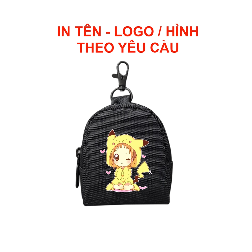 IN TÊN LOGO THEO YC - OVAL Ví móc khóa đựng tiền lẻ, phụ kiện tai nghe,. chất vải bố pvc chống thấm, size 9 x 7 x 4cm