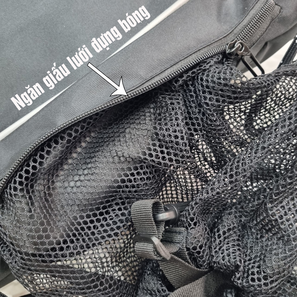️✔️ Balo bao gồm 5 ngăn: 01 ngăn chính lớn chưa được nhiều đồ dùng, Phía trước balo phối ngăn kéo nhỏ, dọc bên hông có 2 ngăn lưới đựng chai nước và 1 ngăn rút bằng lưới để đựng bóng rổ, bóng đá,...