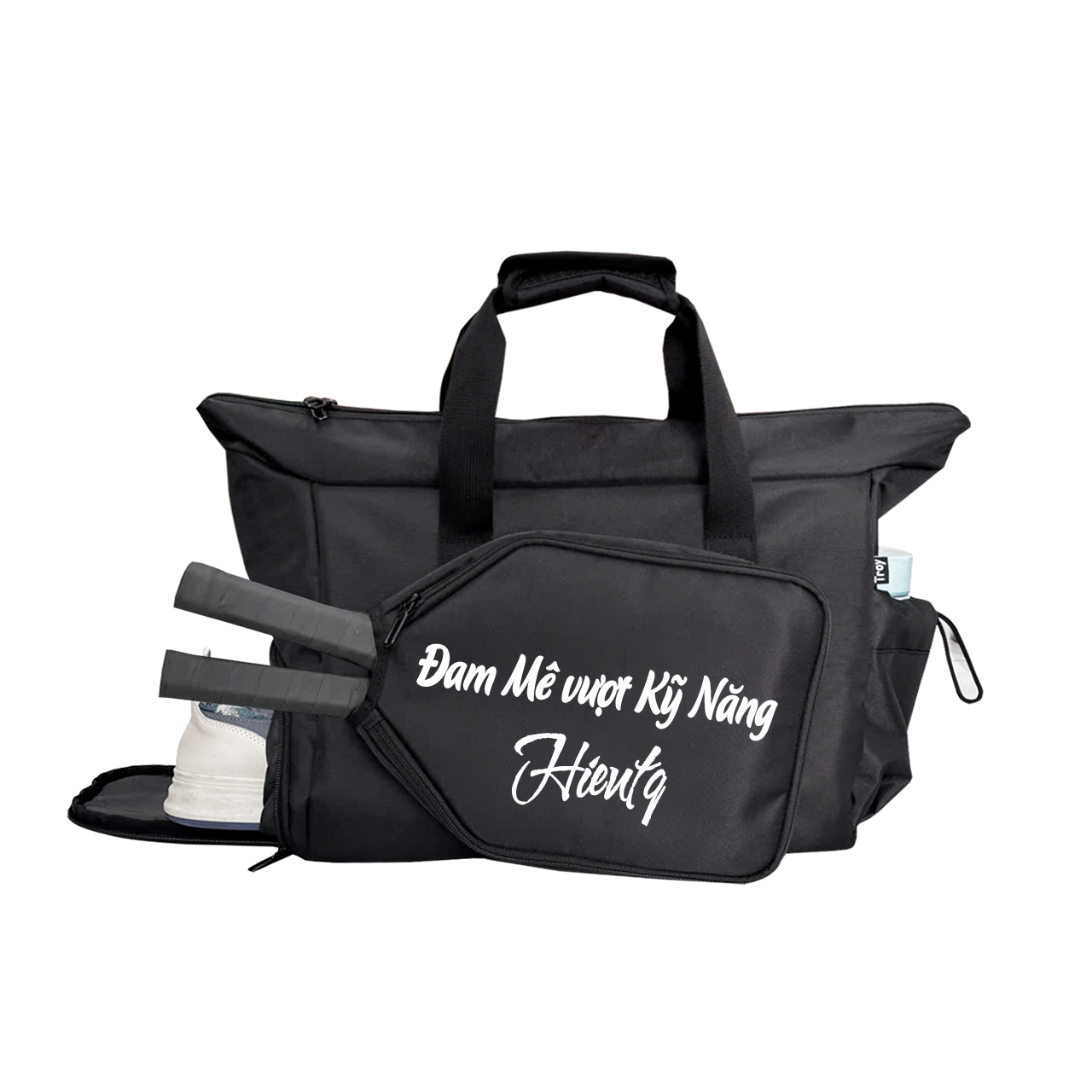 ️✔️ Túi đựng vợt pickleball TROY TETHYS gồm 5 ngăn: 01 ngăn chính lớn chưa được nhiều đồ dùng kèm 1 ngăn kéo khóa bên trong. Phía trước túi du lịch phối 1 ngăn để đựng vừa vợt pickleball và bên hông 1 ngăn đựng giày. Mặt sau kèm 1 ngăn kéo và bên hông có 1 ngăn phụ để đựng chai nước