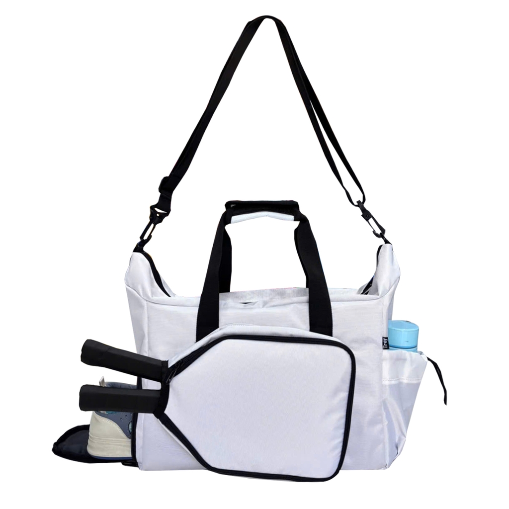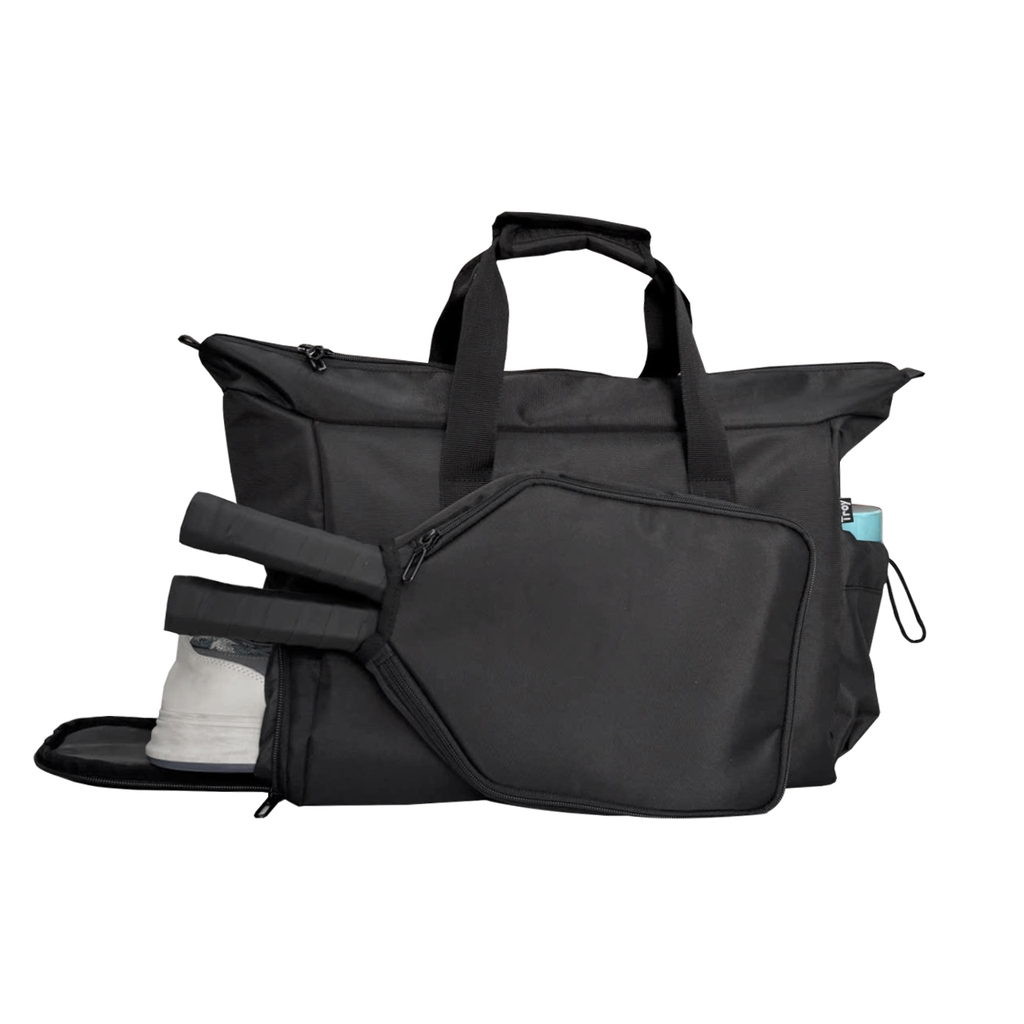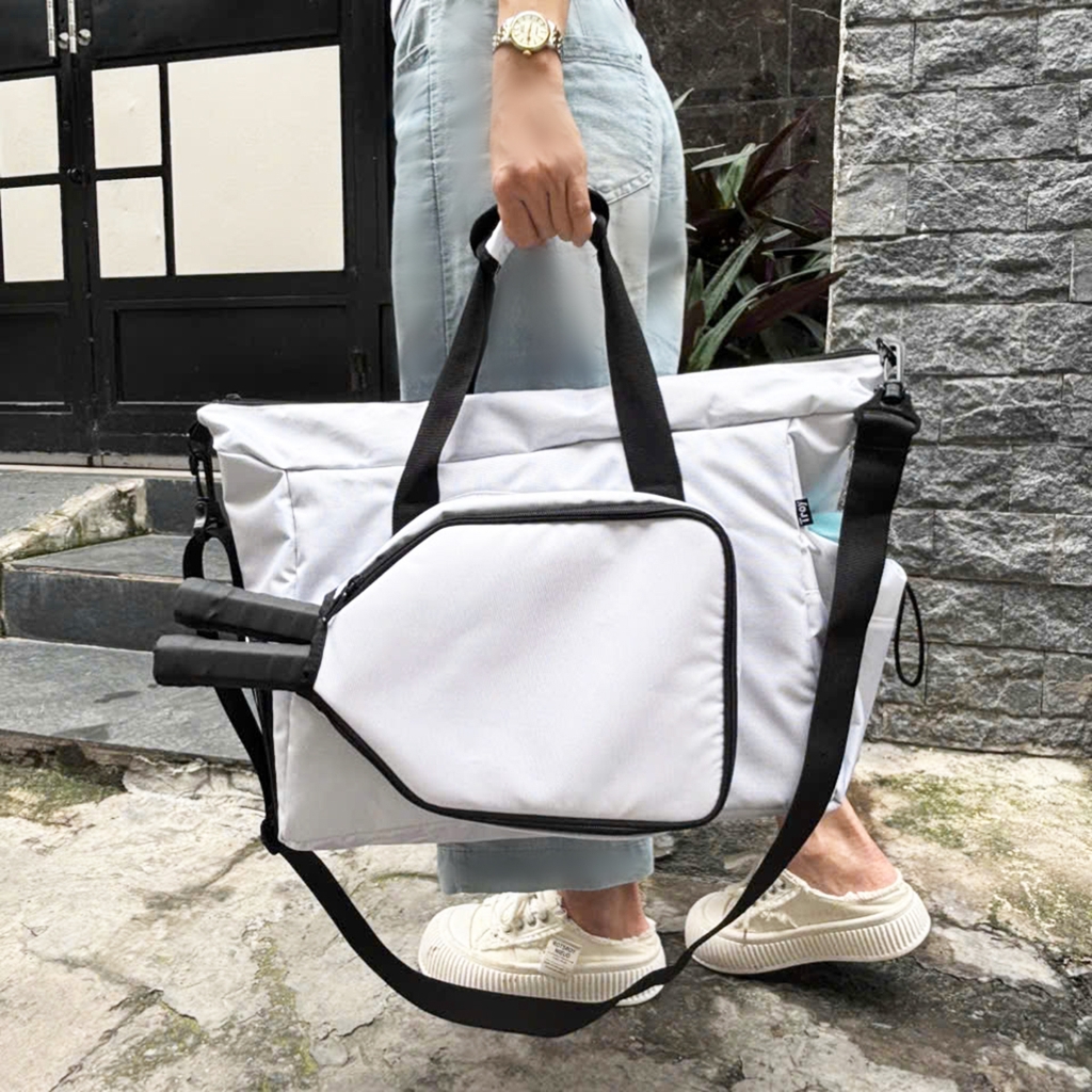 ️✔️ Túi đựng vợt pickleball TROY TETHYS gồm 5 ngăn: 01 ngăn chính lớn chưa được nhiều đồ dùng kèm 1 ngăn kéo khóa bên trong. Phía trước túi du lịch phối 1 ngăn để đựng vừa vợt pickleball và bên hông 1 ngăn đựng giày. Mặt sau kèm 1 ngăn kéo và bên hông có 1 ngăn phụ để đựng chai nước