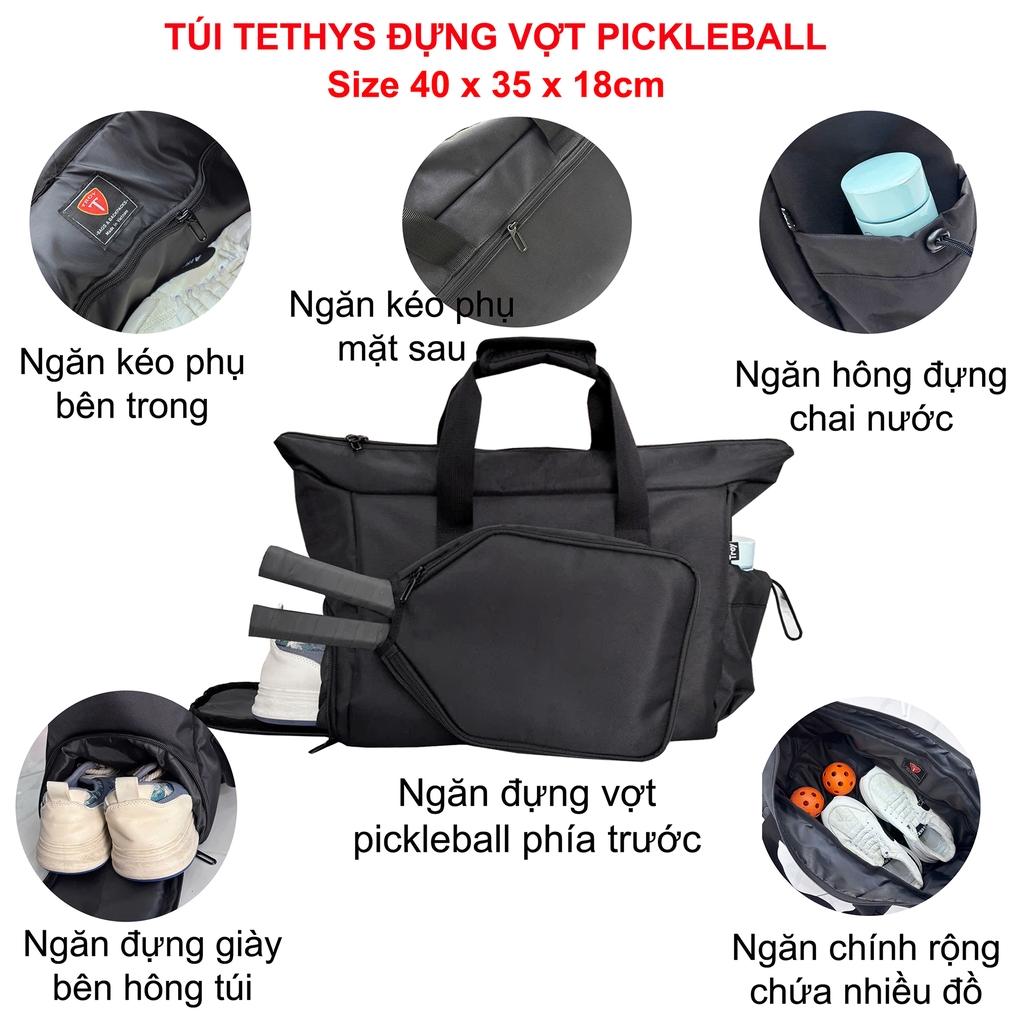 ✔️ Với kích thước lớn: cao 35 x ngang 40cm x rộng đáy 18cm có ngăn riêng đựng vừa vợt pickleball, ngăn rộng lớn chứa được đủ đồ dùng cần thiết khi đi tập thể thao hoặc có thể dùng đựng đồ khi du lịch, công tác 1-2 ngày